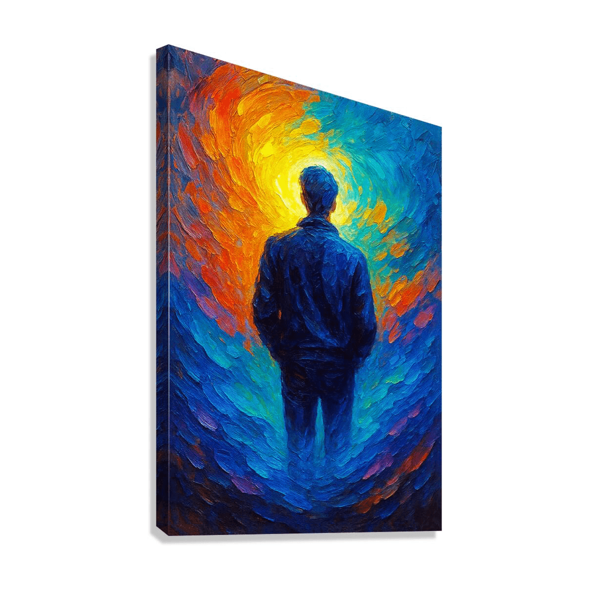 A vibrant, uplifting painting filled with swirling blues, golds, and warm light. The rich brushstrokes create a sense of energy, clarity, and movement, bringing a bright and optimistic mood to any space. Modern, colorful, and emotionally warm — a beautiful statement piece for contemporary interiors.