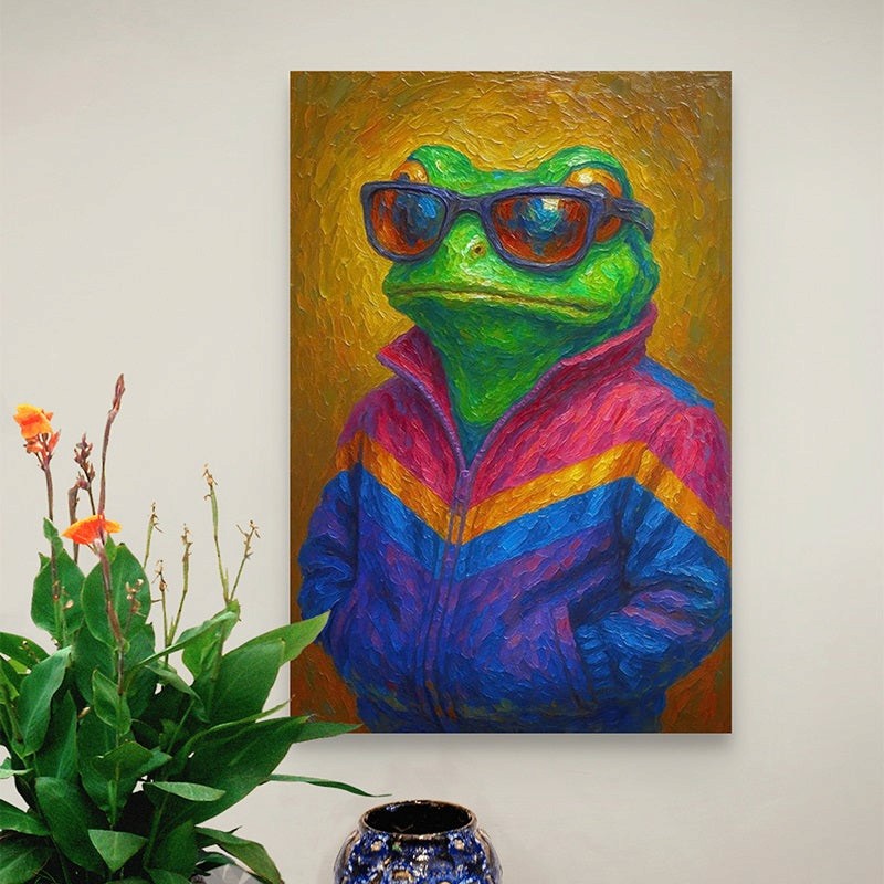 A vibrant and uplifting portrait full of color, personality, and charm. This contemporary artwork blends bold brushwork with playful character, creating a joyful statement piece that instantly brightens any modern space. A perfect mix of fine-art quality and light-hearted energy.