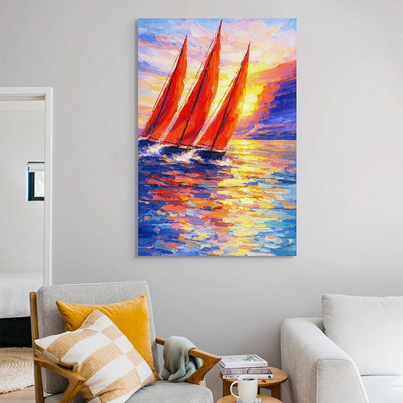 Warm light and bold color move across open water, creating a sense of motion and quiet optimism.