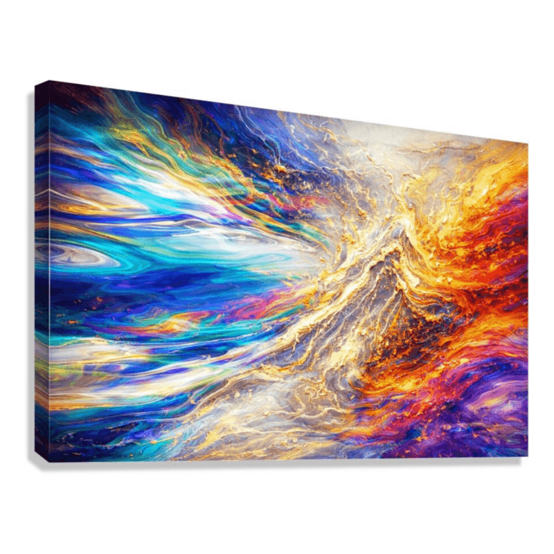 Dynamic color and radiant flow create a sense of movement and power.