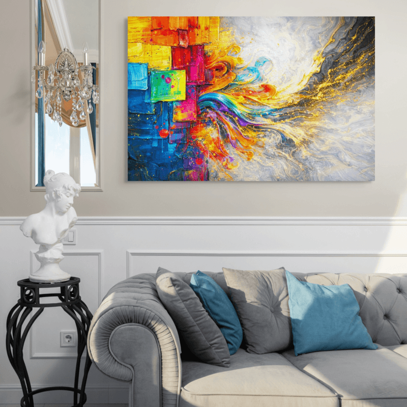 A modern abstract painting with dynamic energy and textured movement, designed to bring strength, inspiration, and a bold contemporary statement to any living space.