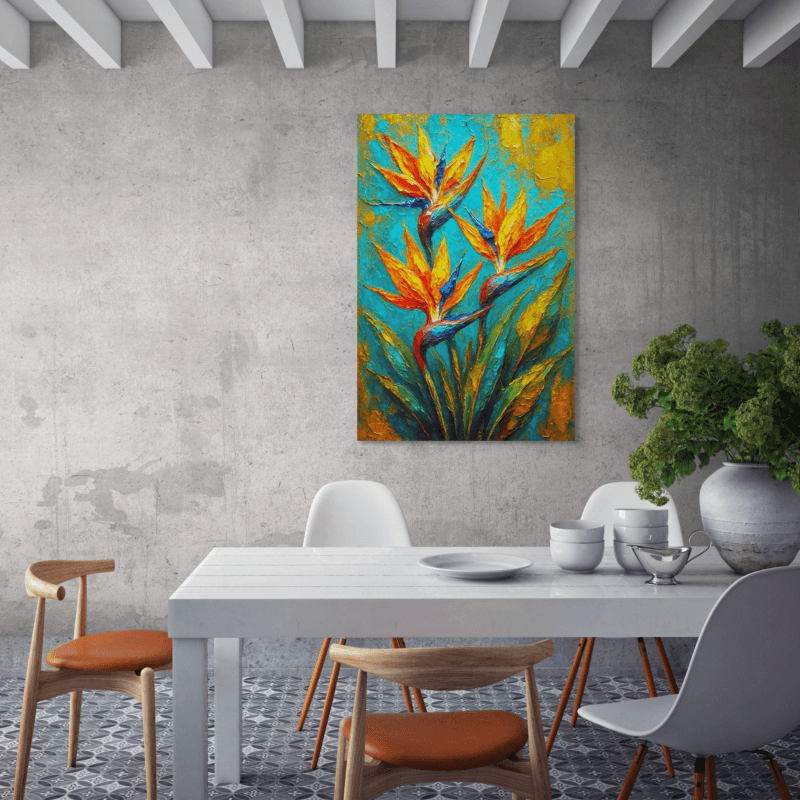 A vibrant celebration of color and movement, this painting radiates joy through bold florals and lively texture. The energetic palette brings a fresh, positive mood that feels both artistic and welcoming. Perfect for adding a cheerful focal point that brightens a room and brings life and warmth into your home.